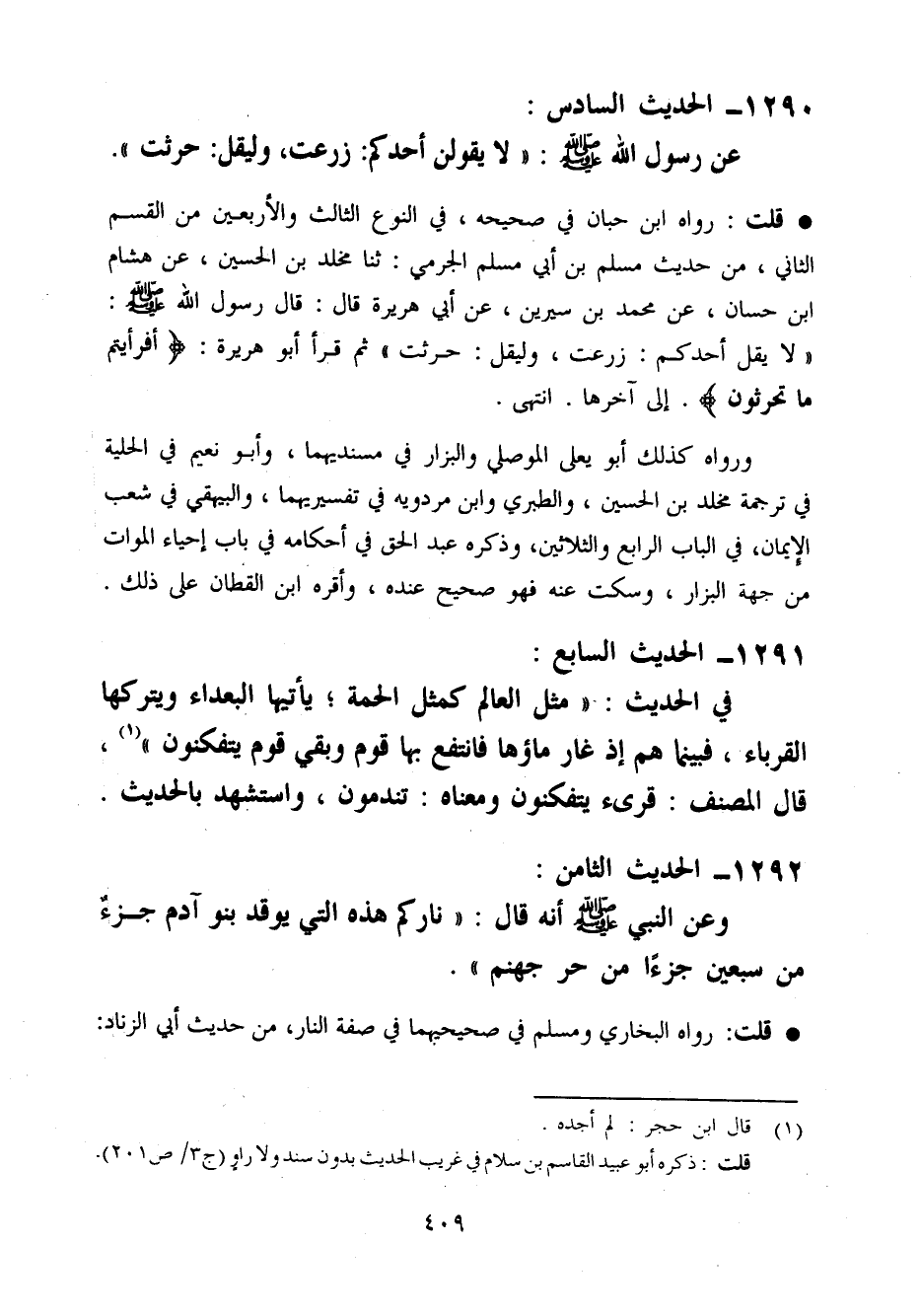 1290 - الحَدِيث السَّادِس عَن رَسُول الله صَلَّى اللَّهُ عَلَيْهِ وَسَلَّم َ (لَا يَقُولَن أحدكُم زرعت وَليقل حرثت)