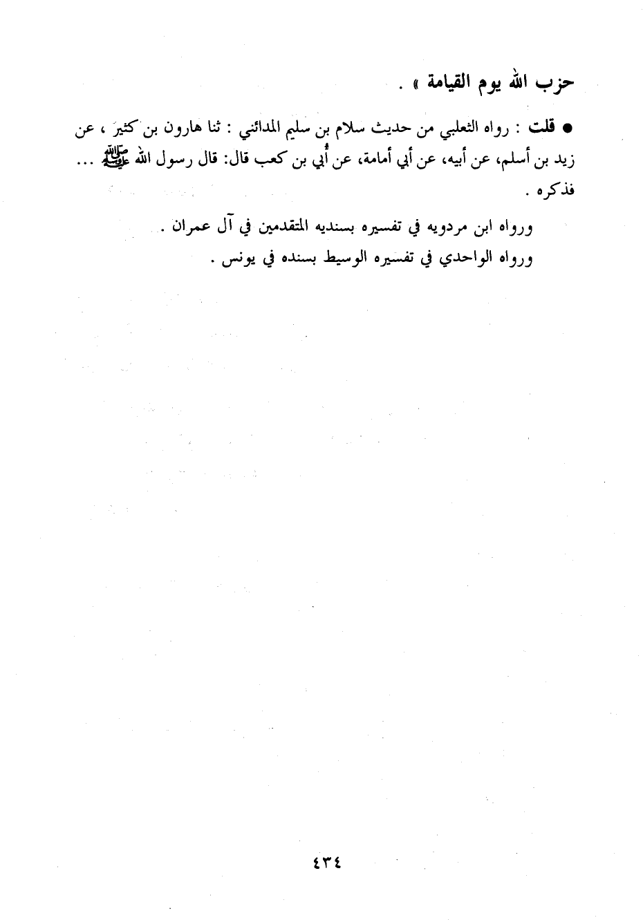 قلت رَوَاهُ الثَّعْلَبِيّ من حَدِيث سَلام بن سليم الْمَدَائِنِي ثَنَا هَارُون بن كثير عَن زيد بن أسلم عَن أَبِيه عَن أبي أُمَامَة عَن أبي بن كَعْب قَالَ قَالَ رَسُول الله صَلَّى اللَّهُ عَلَيْهِ وَسَلَّم َ فَذكره