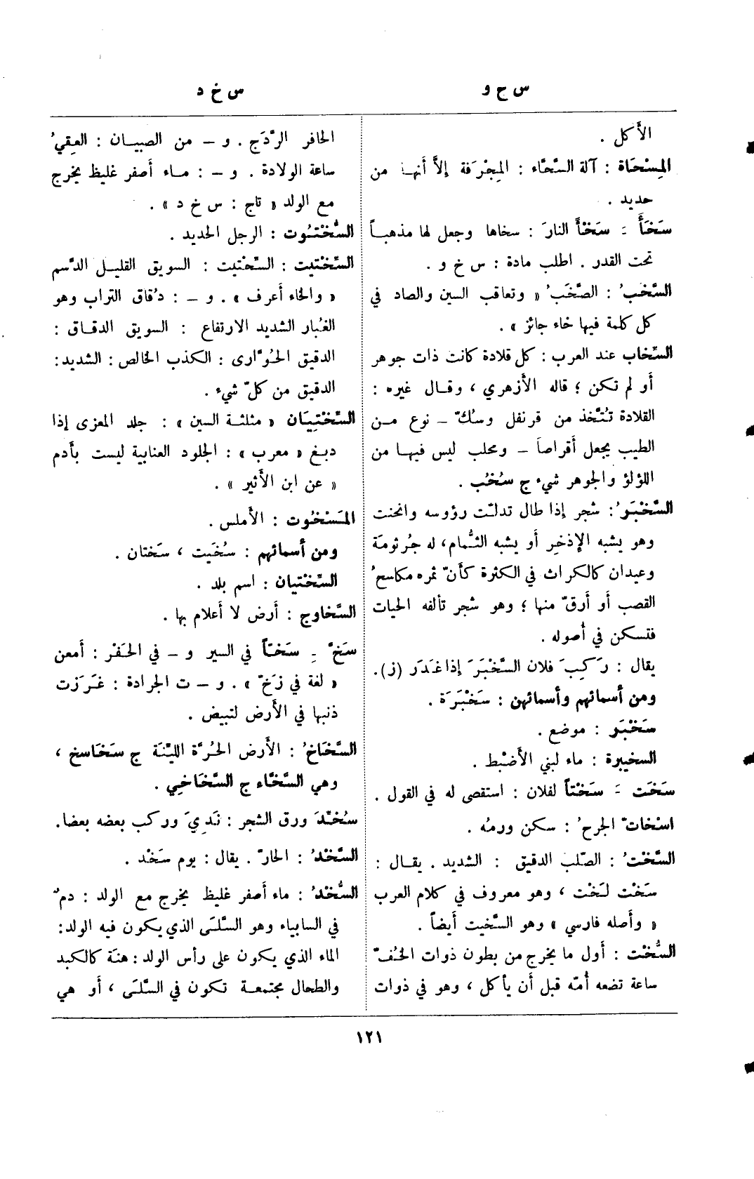السخد: ماء أصفر غليظ يخرج مع الولد: دم في السابياء وهو السلسى الذذي يكون فيه الولد: الماء الذي يكون على رأس الولد: هنة كالكبد والطحال مجتمعة تكون في السلى, أو هي