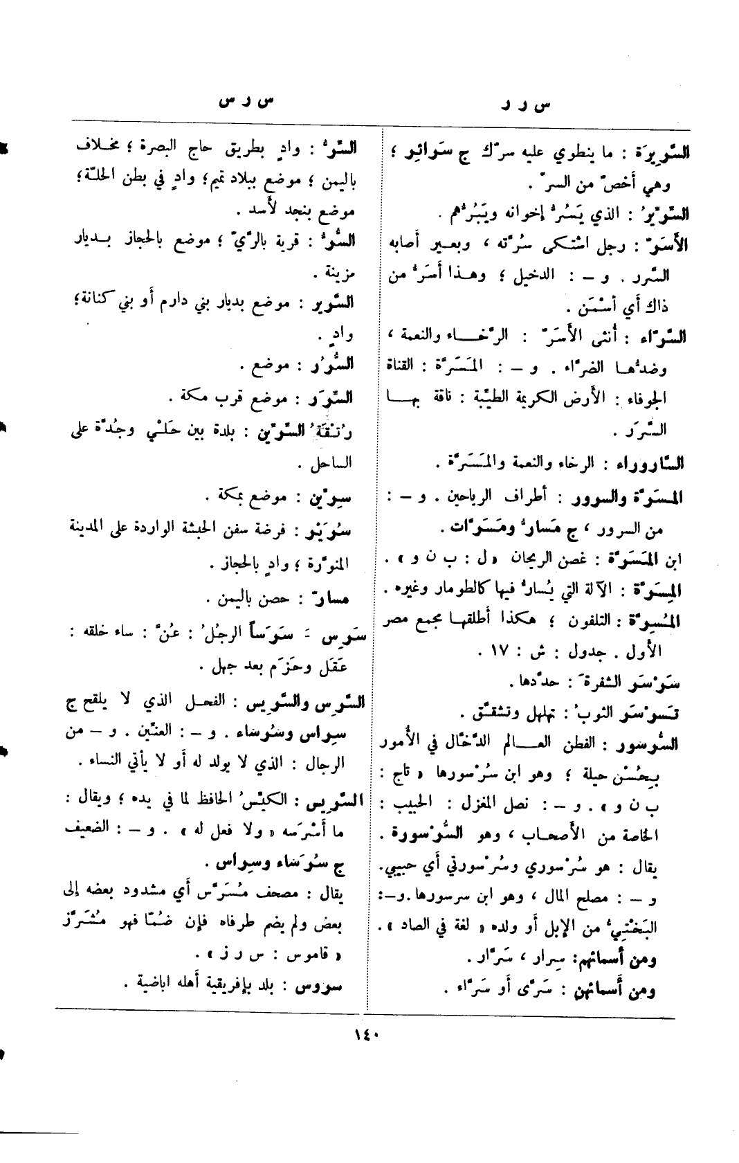 السر: واد بطريق حاج البصرة؛ مخلاف باليمن؛ موضع ببلاد تميم؛ واد في بطن الحلة؛ موضع بنجد لأسد.