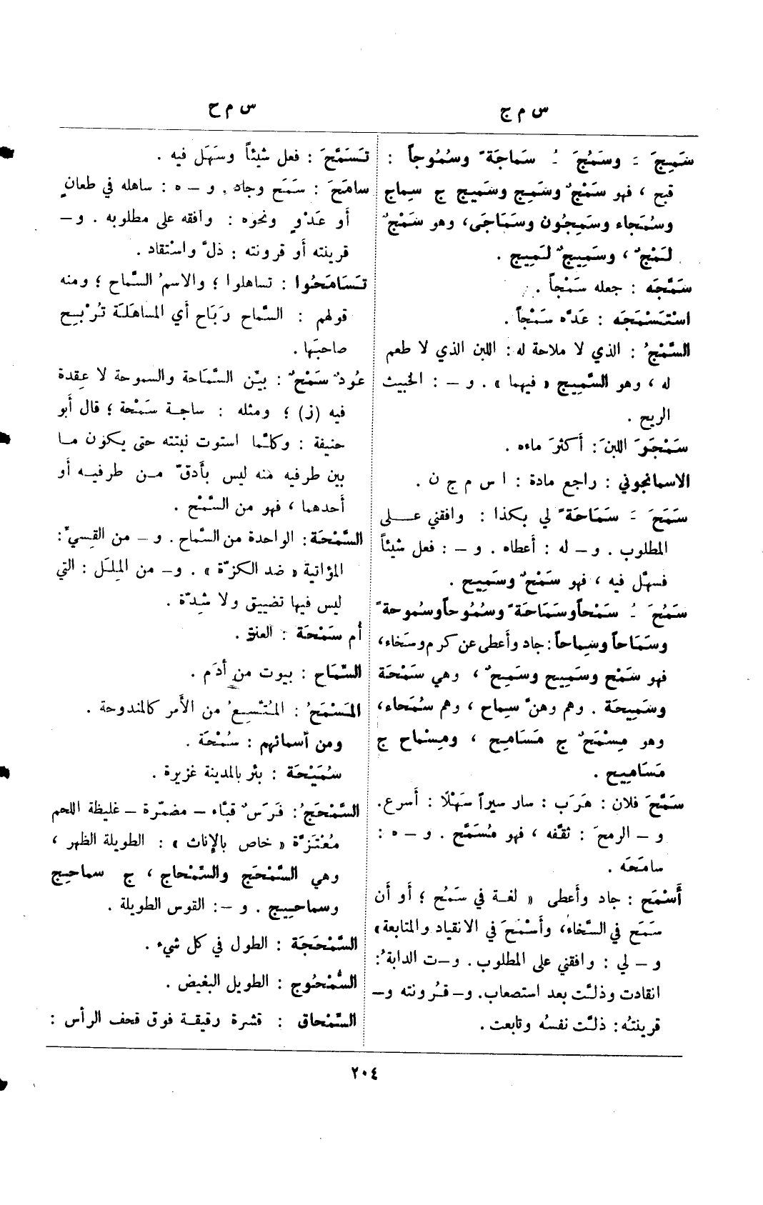 السمحة: الوحدة من السماح. و– من القسي: المؤاتية "ضد الكزة ". و– من الملل: التي ليس فيها تضييق ولا شدة.