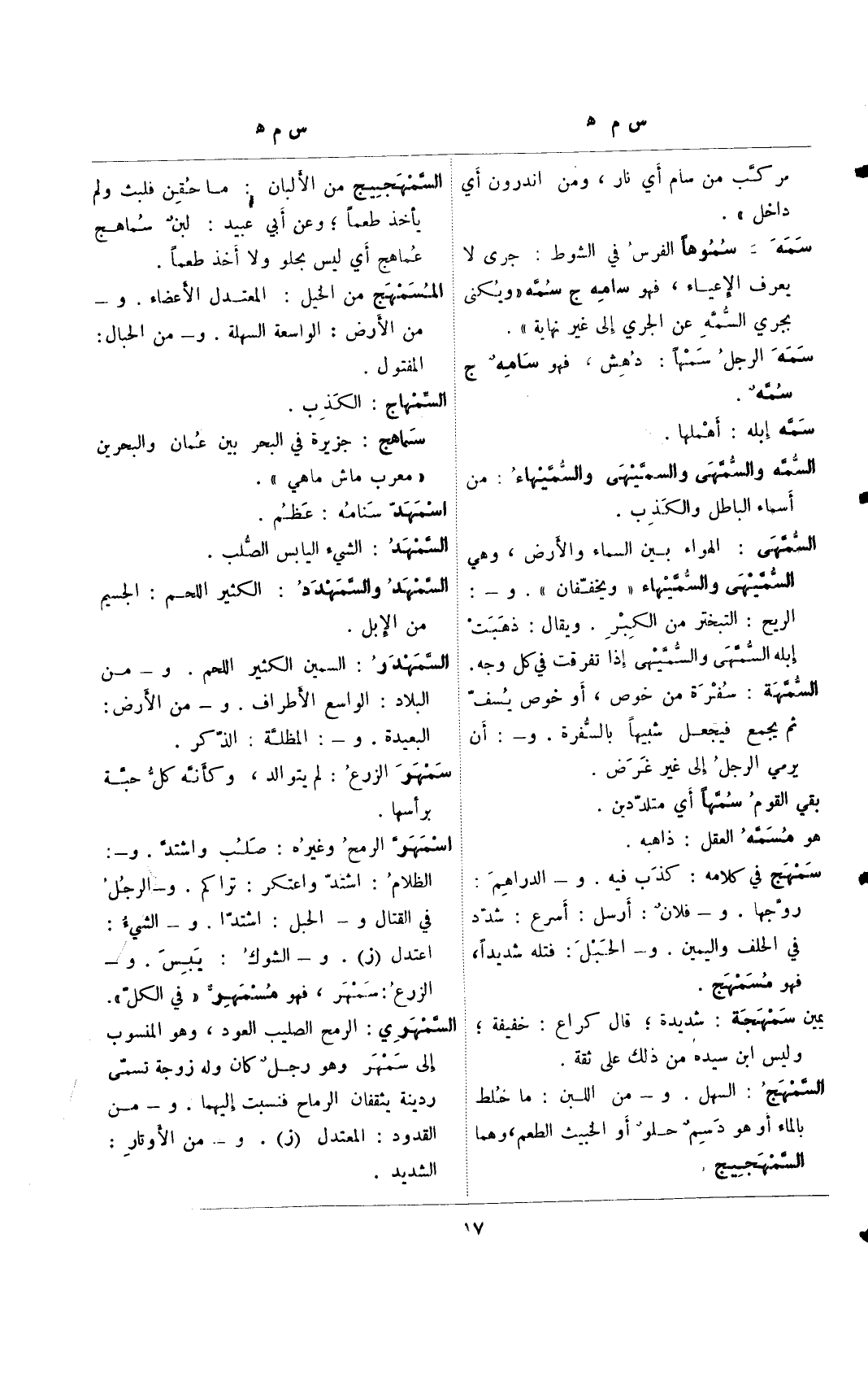 السمهج: السهل. و– من اللبن: ما خلط بالماء أو دسم حلو أو الخبيث الطعم، وهما السمهجيج.