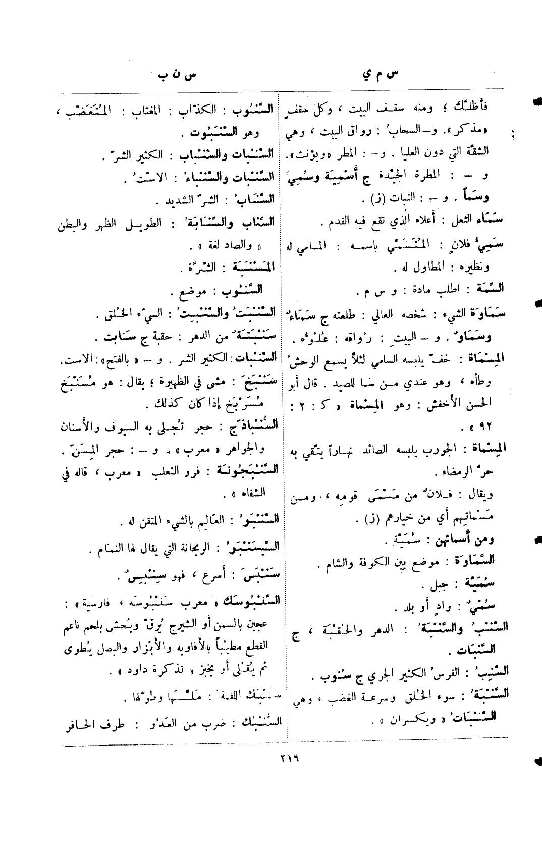 السناب والسنابة: الطويل الظهر والبطن "والصاد لغة ".
