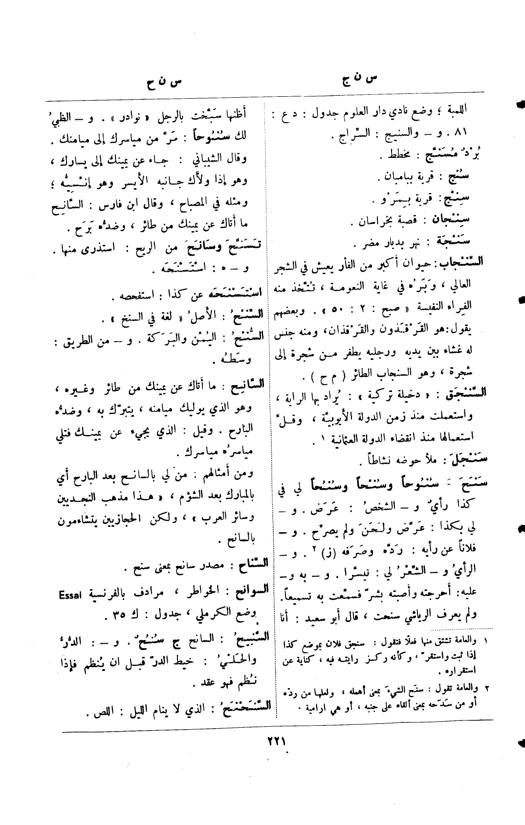 (¬2) والعامة تقول: سنح الشيء بمعنى أهمله، ولعلها من رده أو من سدحه بمعنى ألقاه على جنبه، أو هي ارامية.