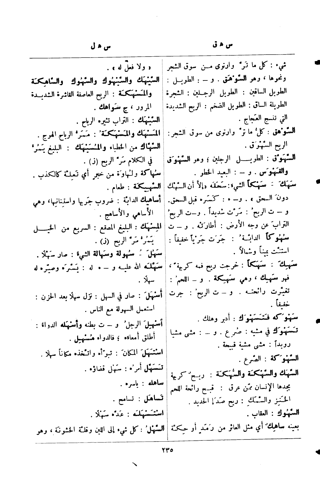 السهك والسهكة والسهكة: ريح كريهة يجدها الإنسان ممن عرق: قبح رائحة اللحم الخنز والسمك: ريح صدإ الحديد.