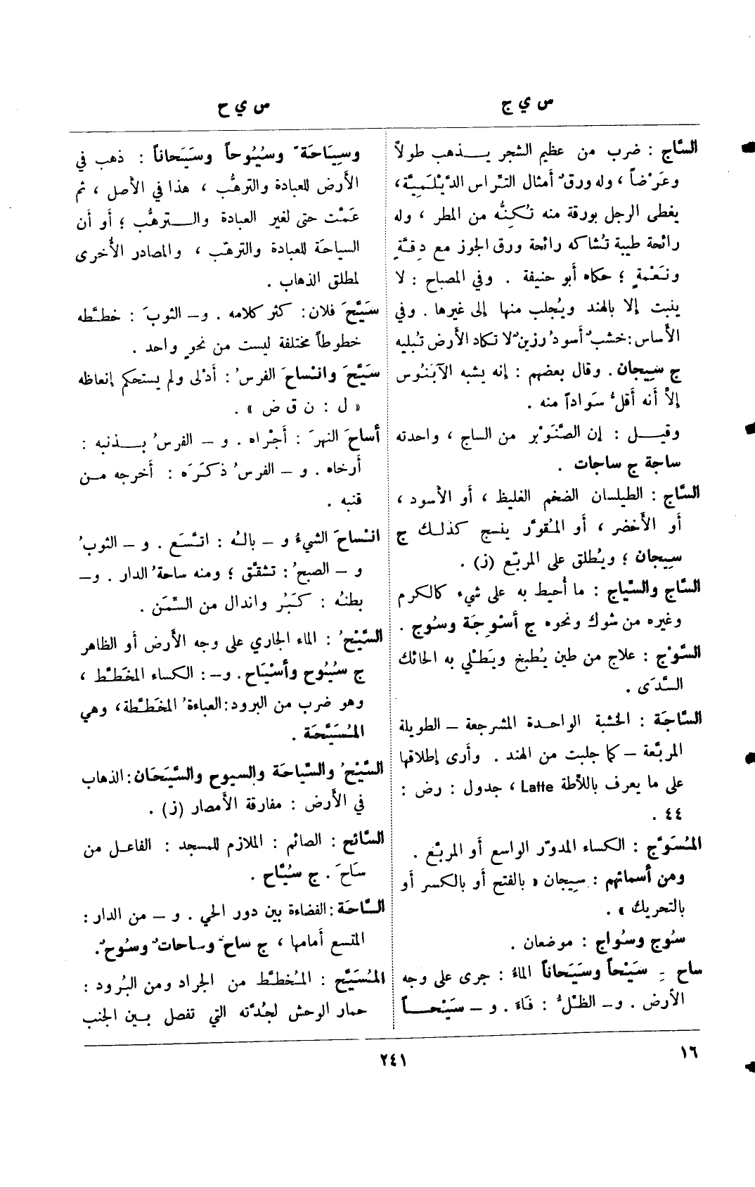 ساح– سيحًا وسيحانًا الماء: جرى على وجه الأرض. و– الظل: فاء. و– سئحًا