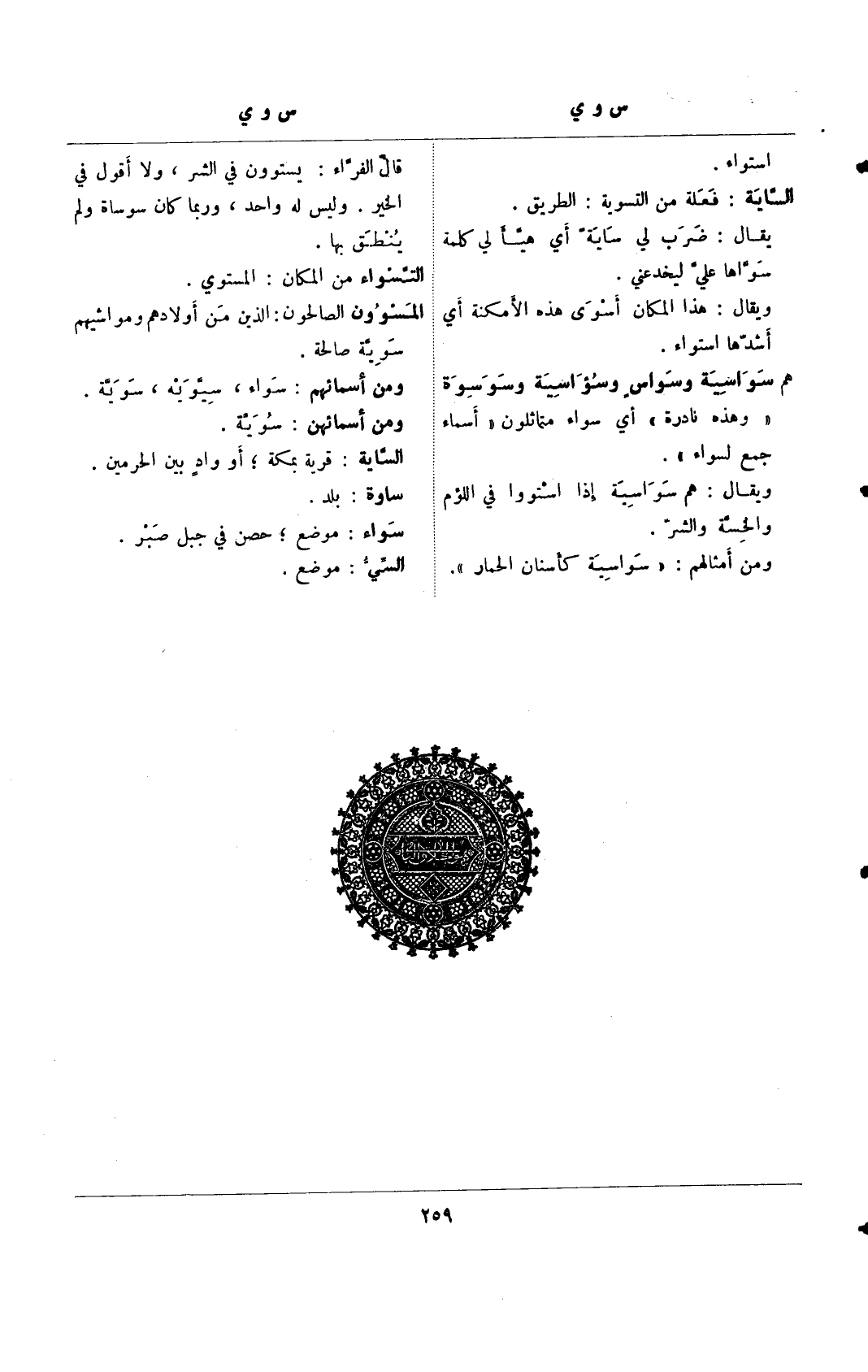 هم سواسية وسواس وسؤاسية وسوسوة "وهذه نادرة" أي سواء متماثلون "أسماء جمع لسواء".
