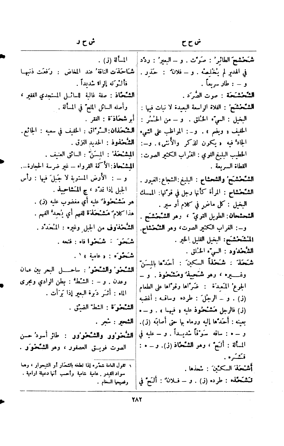 الشحشح: الغلاة الواسعة البعيدة لا نبات فيها: البخيل: السيء الخلق. و- من الخمر: الخفيف "ويضم". و-: المواظب على الشيء الجاد فيه "يكون الذكر والأنثي". و-: الخطيب البليغ القوي: الغراب الكثير الصوت: القطاة السريعة.