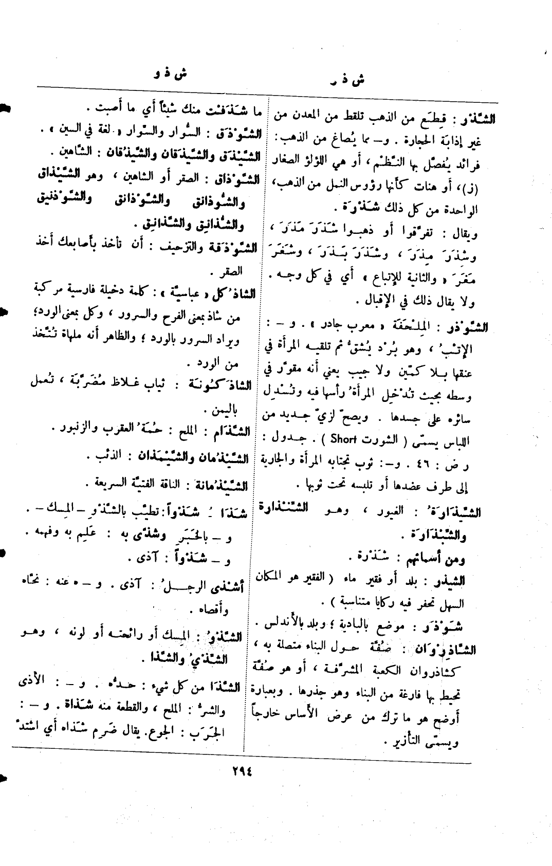 الشاذ كل "عباسية": كلمة دخيلة فارسية مركبة من شاذ بمعنى الفرح والسرور، وكل بمعنى الورد، ويراد السرور بالورد، والظاهر أنه ملهاة تتخذ من الورد.