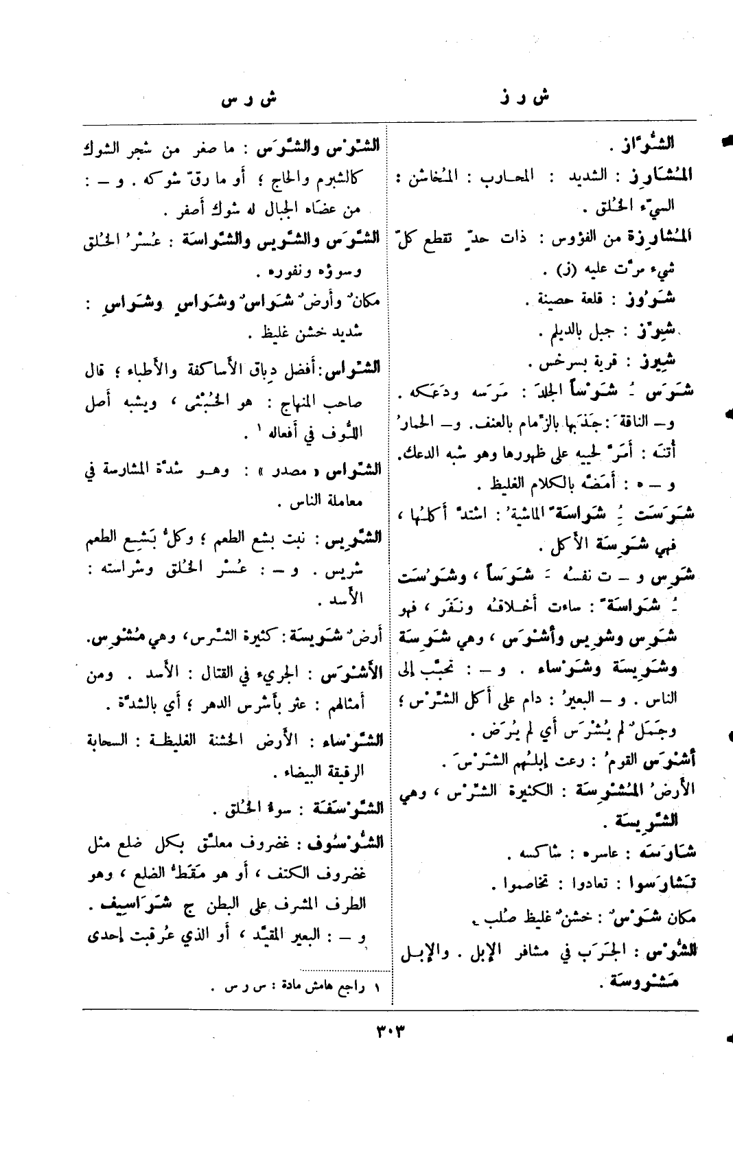الشريس: نبت بشع الطعم؛ وكل بشع الطعم شريس. و-: عُسر الخلق وشراسته: الأسد.