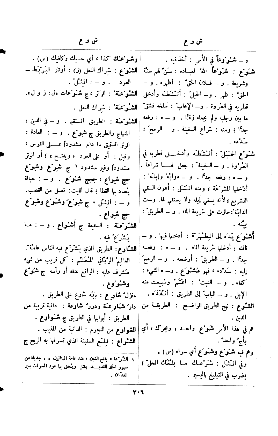 (¬1) الشرعة "بفتح الشين، عند عامة اللبنانيين": جديلة من سبور الجلد القديد يفتل ويُعلق بها عود المحراث بنير الفدان.
