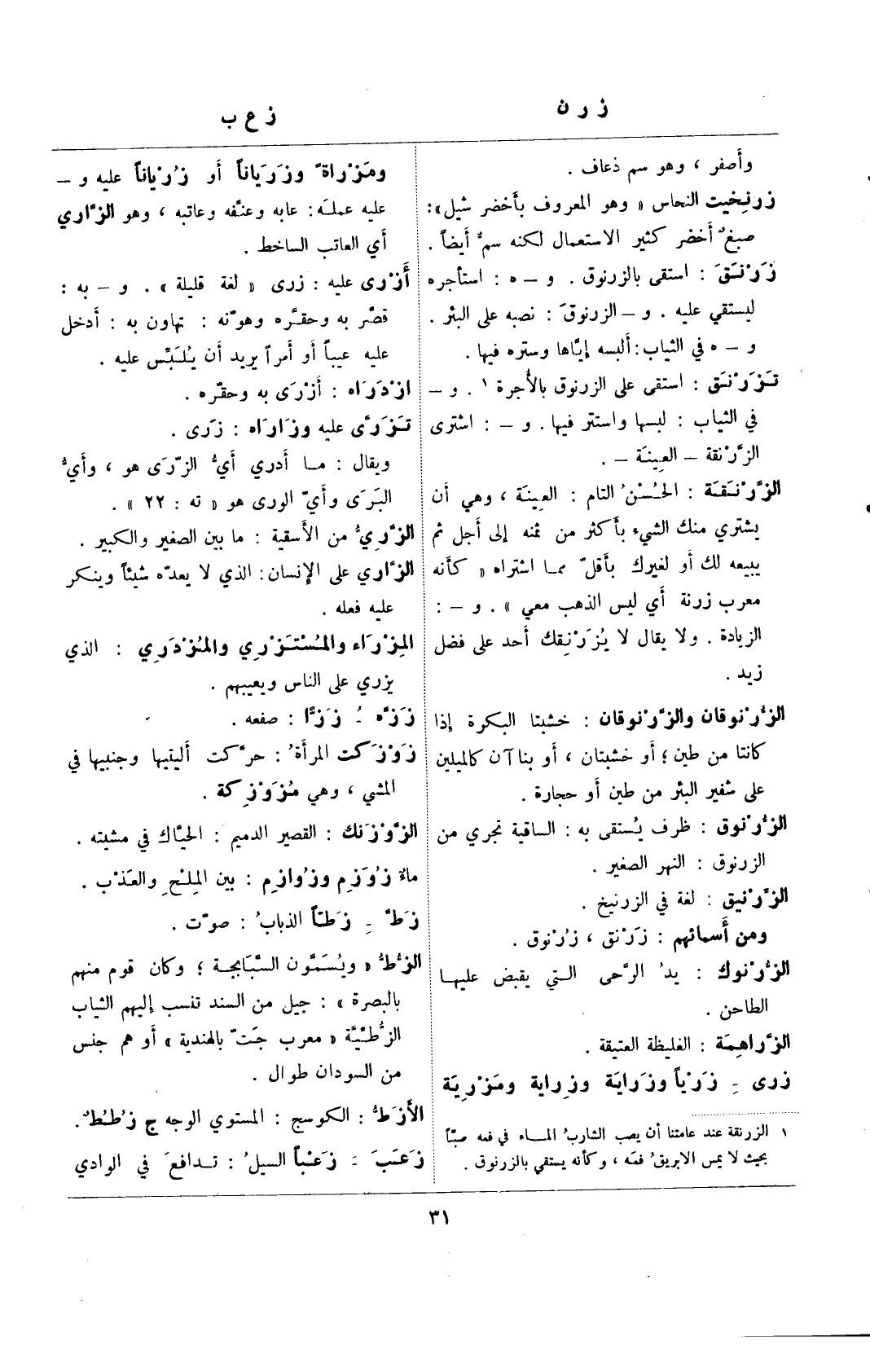 ومزراة وزرياناً أو زرياناً عليه و- عليه عمله: عابه وعنفه وعاتبه، وهو الزاري أي العاتب الساخط.