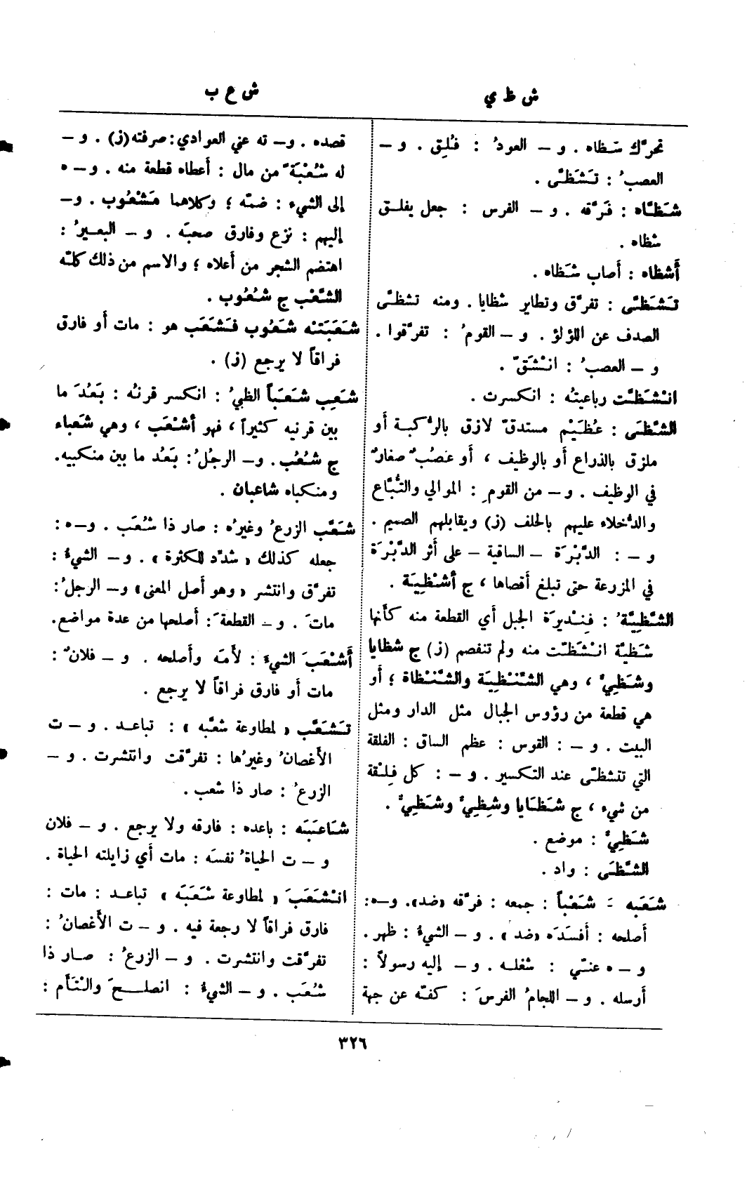 شعبه- شعبًا: جمعه: فرقه "ضد". و-هـ: أصلحه: أفسده "ضد". و- الشيء: ظهر. و- هـ عني: شغله. و- إليه رسولًا: أرسله. و- اللجام الفرس: كفه عن جهة