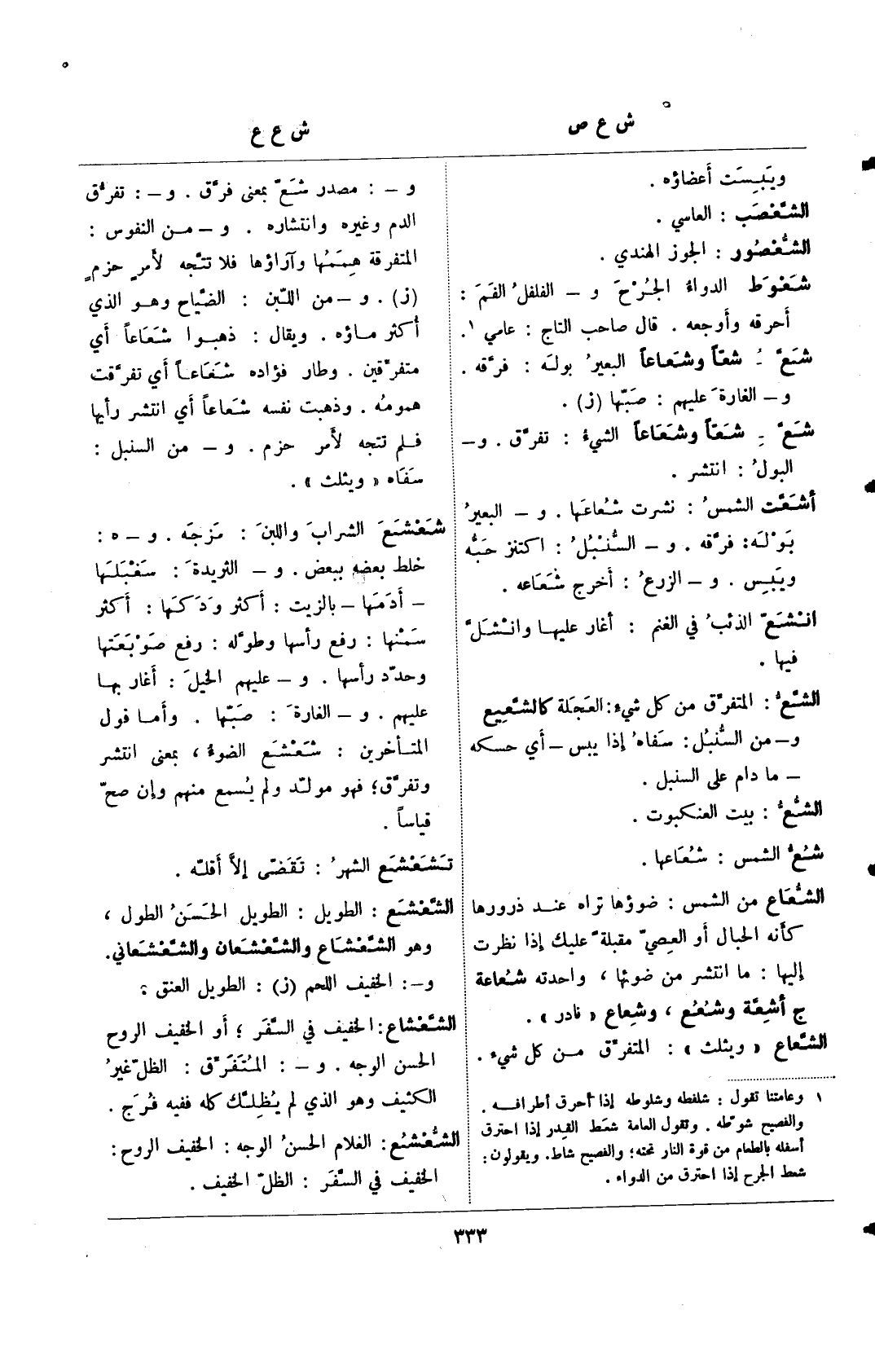 شع- شعًا وشعاعًا البعير بوله: فرقه. و- الغارة عليهم: صبها (ز).