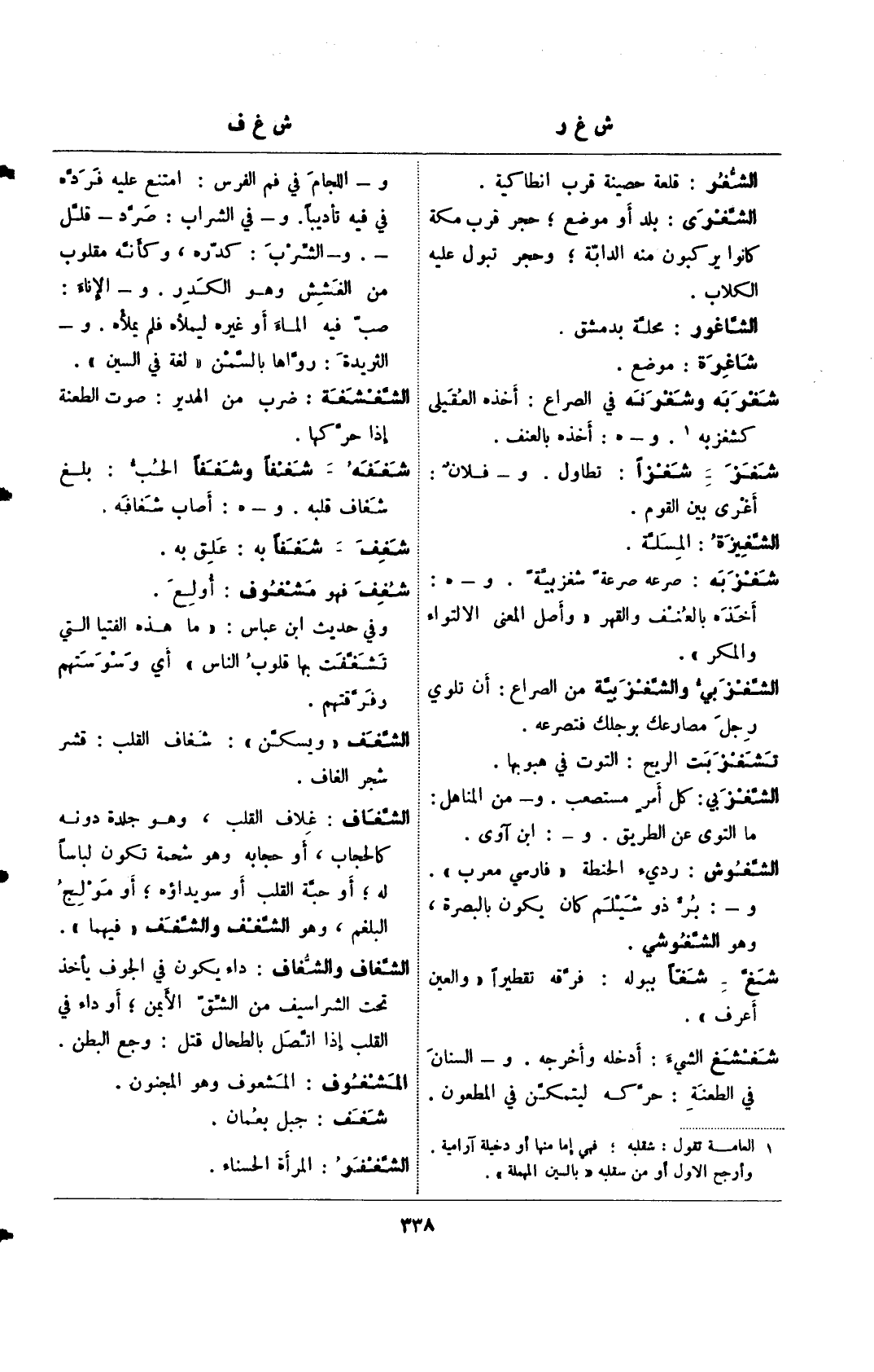 شغ- شغًا ببله: فرقه تقطيرًا "والعين أعرف".