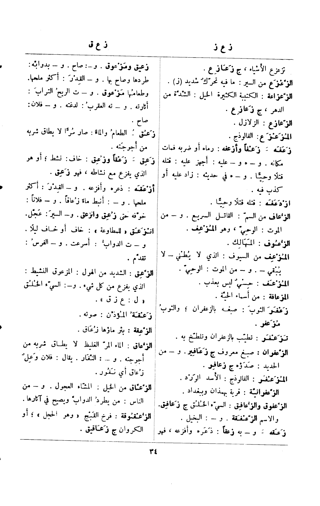 زعق – زعقاً وزعق: خاف: نشط؛ أو هو الذي يفزع مع نشاطه، فهو زعق.