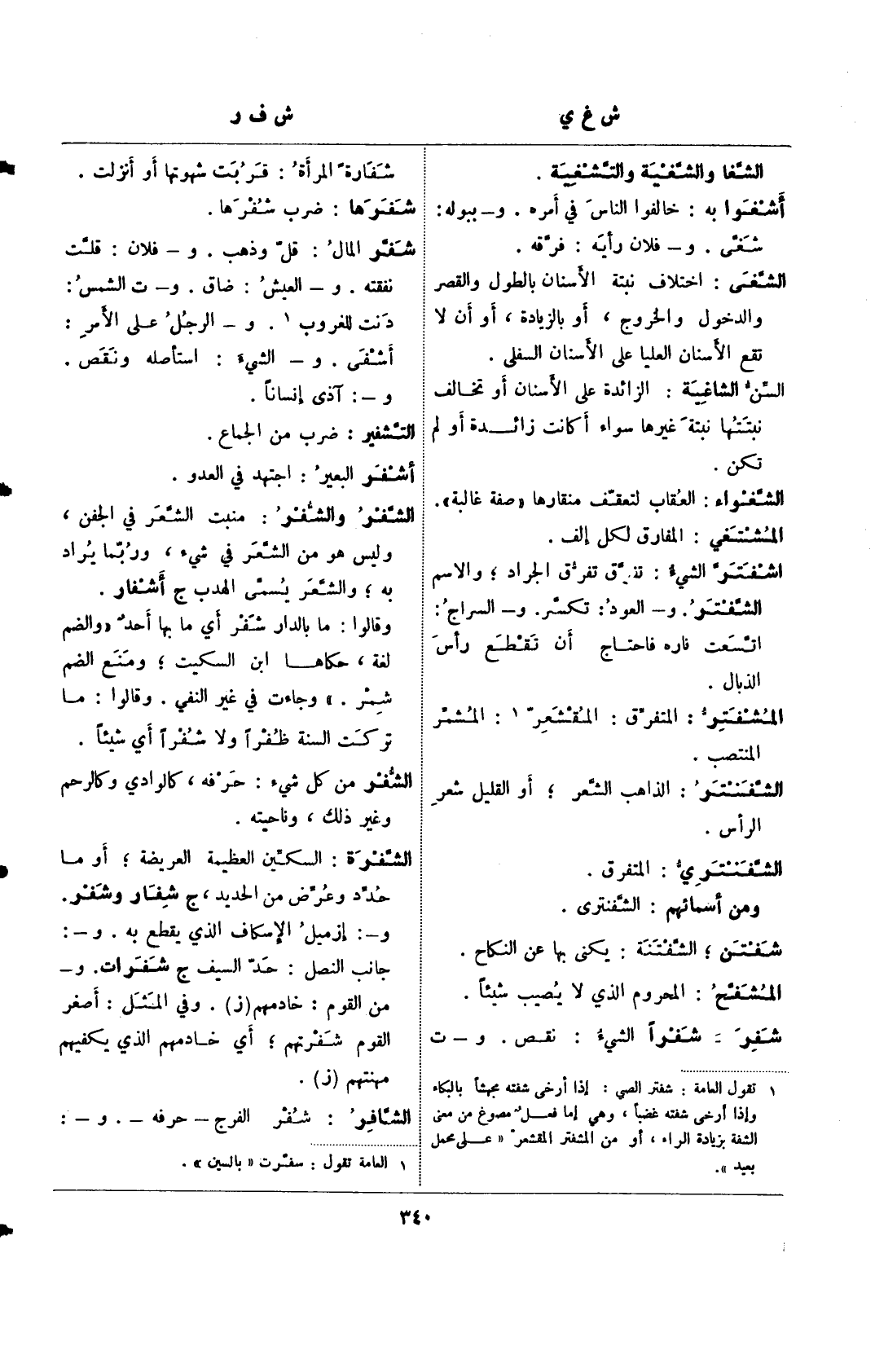 (¬1) تقول العامة: شفتر الصبي: إذا أرخى شفته مجهشًا بالبكاء وإذا أرخى شفته غضبًا، وهي إما فعلٌ مصوغ من معنى الشفة بزيادة الراء، أو من المشفتر المقشعر "على محمل بعيد".