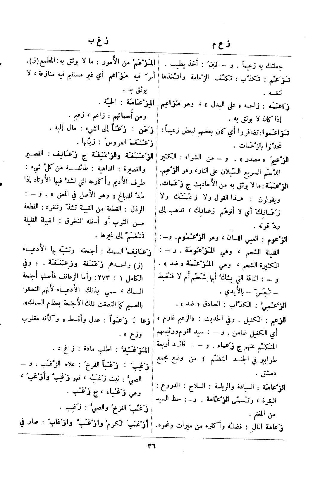 الزعوم: العبي اللسان، وهو الزعموم. و-: القليلة الشحم، وهي المزعومة. و-: الكثيرة الشحم، وهي المزعمة "ضد".