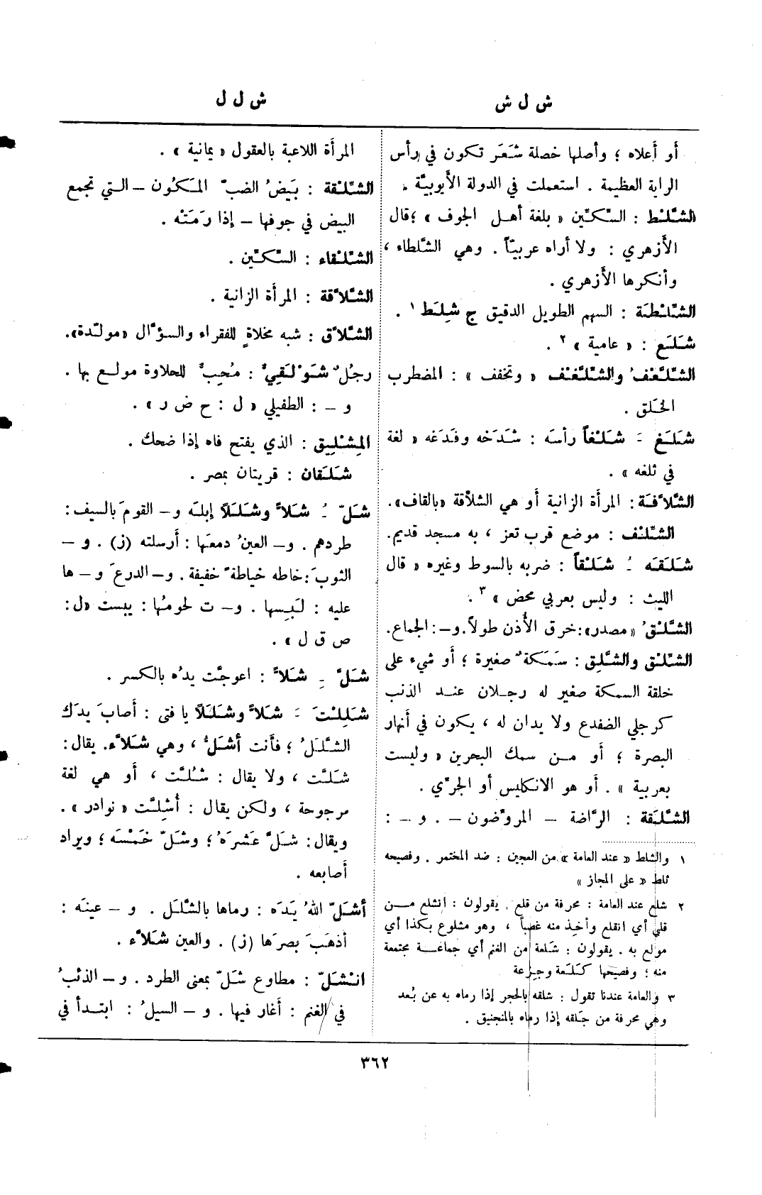 شل: شلاً وشللاً إبله و- القوم بالسيف: طردهم. و- العين دمعها: أرسلته (ز). و- الثوب: خاطه خياطة خفيفة. و-الدرع و- ها عليه: لبسها. و-ت لحومها: يبست "ل: ص ق ل".