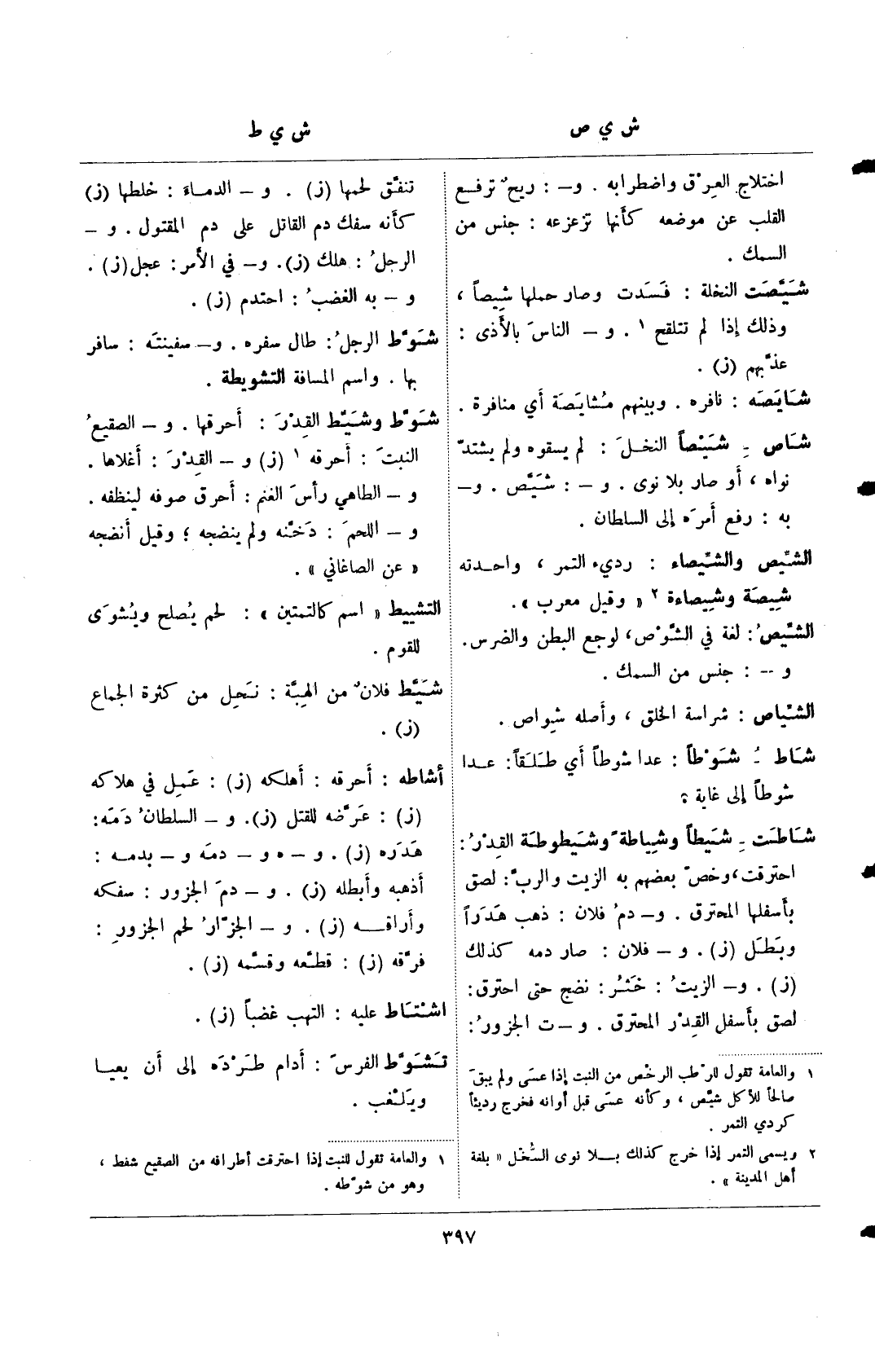 شوط وشيط القدر: احرقها. و- الصقيع النبت: أحرقه (¬3) (ز) و- القدر: أغلاها. و- الطاهي رأس الغنم: أحرق صوفه لينظفه. و- اللحم: دخنه ولم ينضجه؛ وقيل أنضجه "عن الصاغاني".