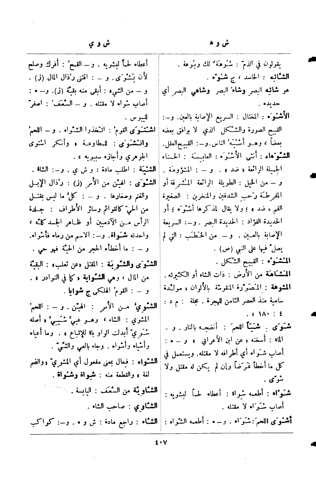 الشيَة: اطلب مادة: وش ي. و-: الشاء.
