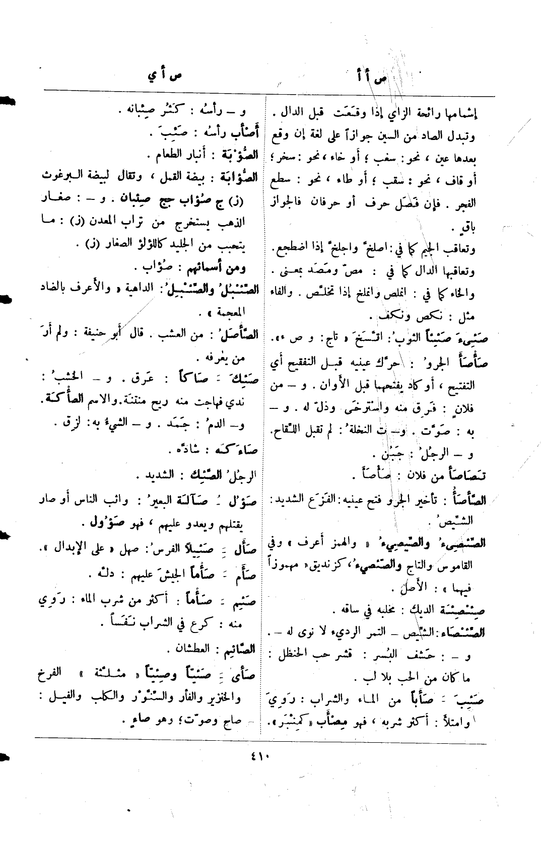 صئب- صأبًا من الماء والشراب: روي وامتلأ: أكثر شربه، فهو مصأب "كمنبر".