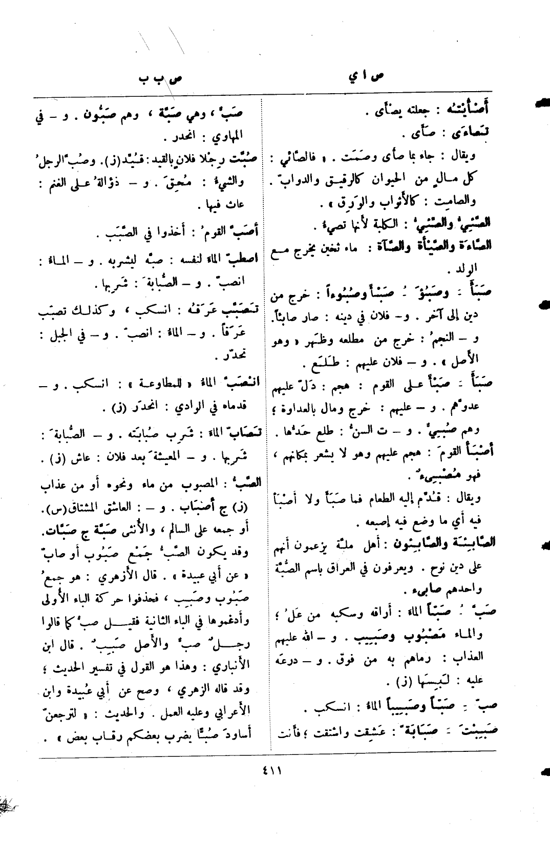 صبأ- وصبؤ- صبأ وصبوءًا: خرج من دين إلى آخر. و- فلان في دينه: صار صابئًا. و- النجم: خرج من مطلعه وظهر "وهو الأصل". و- فلان عليهم: طلع.