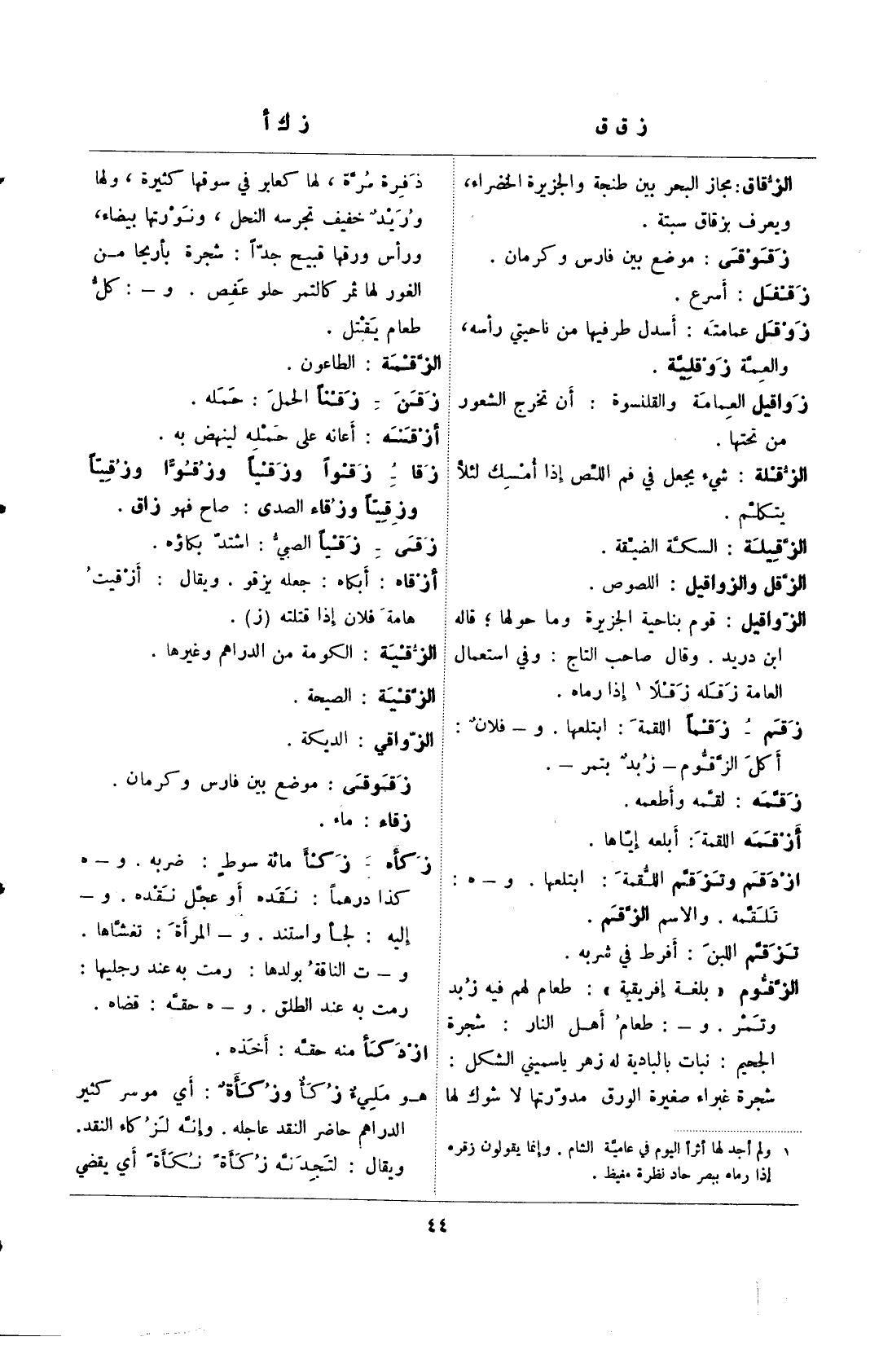 زقا- زقوًا وزقيًا وزقوا وزقيًا وزقاء الصدى: صاح فهو زاق.