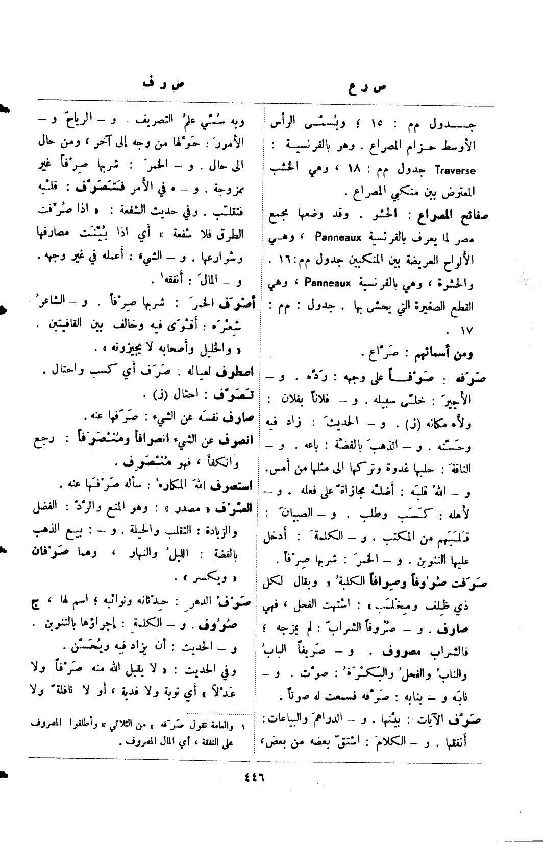 (¬1) والعامة تقول صرفه "من الثلاثي" وأطلقوا المصروف على النفقة، أي المال المصروف.