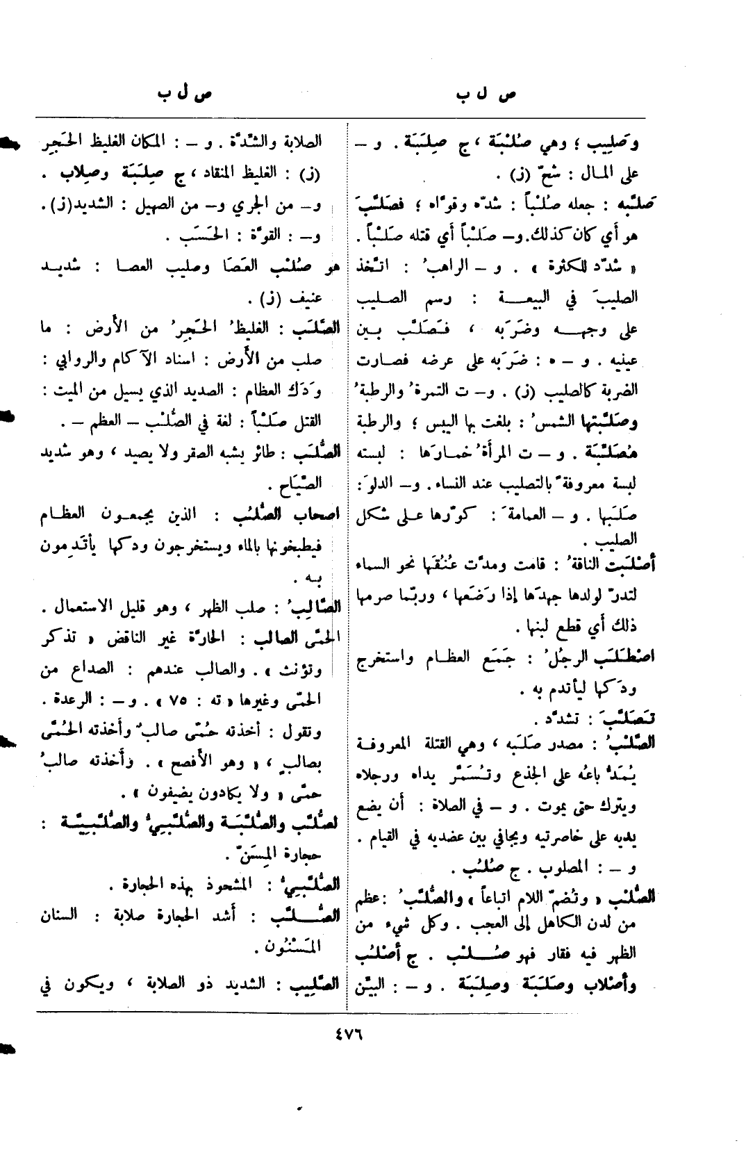 الصلابة والشدة. و-: المكان الغليظ الحجر (ز): الغليظ المنقاد، ج صلبة وصلاب.