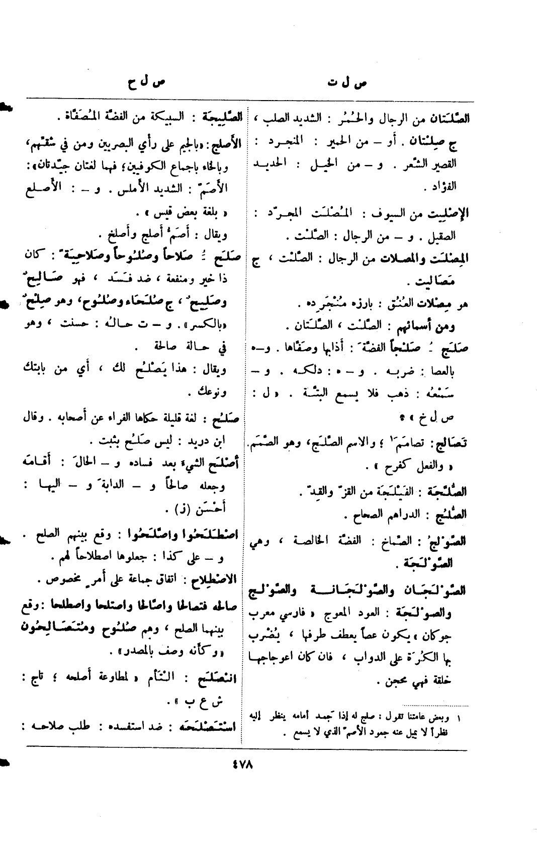 صلح: لغة قليلة حكاها القراء عن أصحابه. وقال ابن دريد: ليس صلح بثبت.