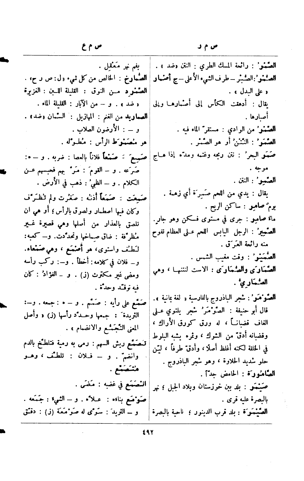 الصمرد من النوق: القليلة اللبنك الغزيرة "ضد". و- من الآبار: القليلة الماء.