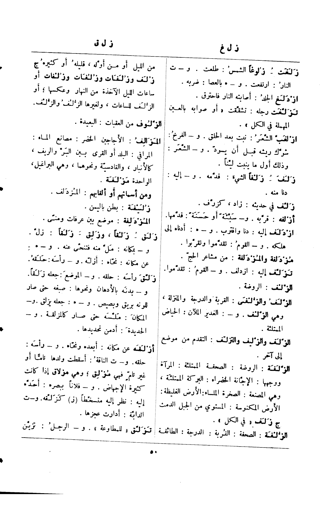 زلغت- زلوغًا الشمس: طلعت. و- ت النا: ارتفت. و- هـ بالعصا: ضربه.