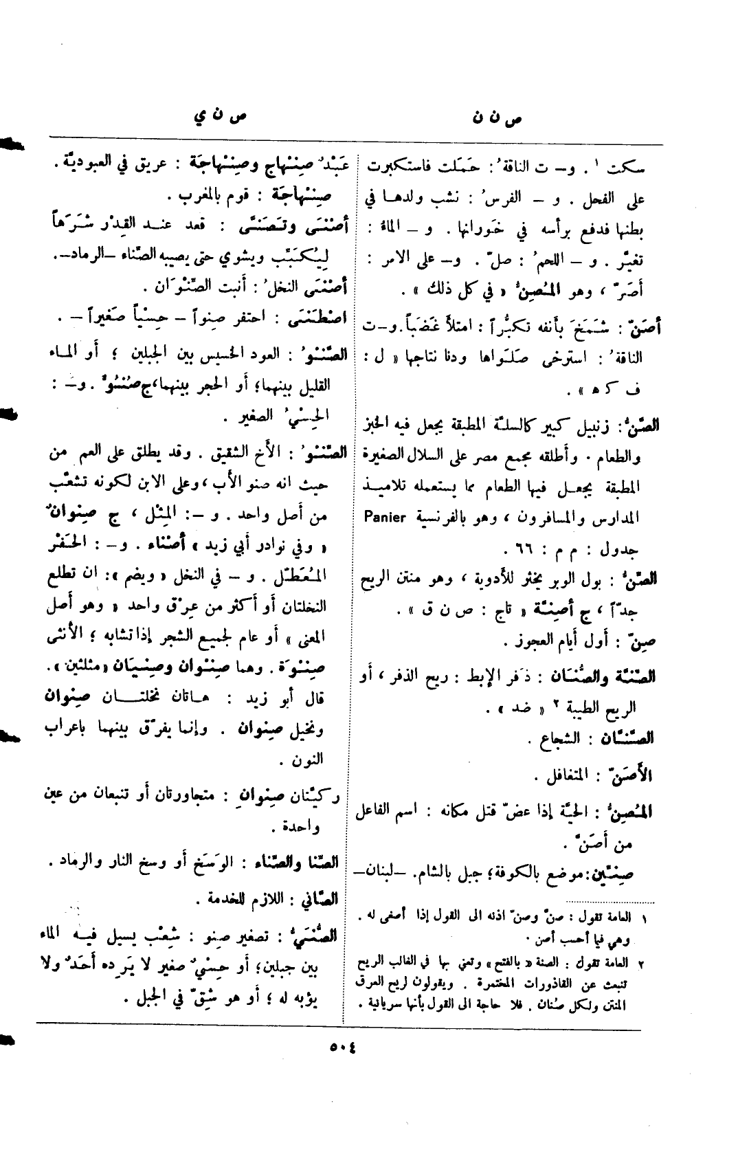 (¬2) العامة تقول: الصنة "بالفتح" وتعني بها في الغالب الريح تنبعث عن القاذورات المختمرة. ويقولون لريح العرق المنتن ولكل صنان. فلا حاجة إلى القول بأنها سريانية.
