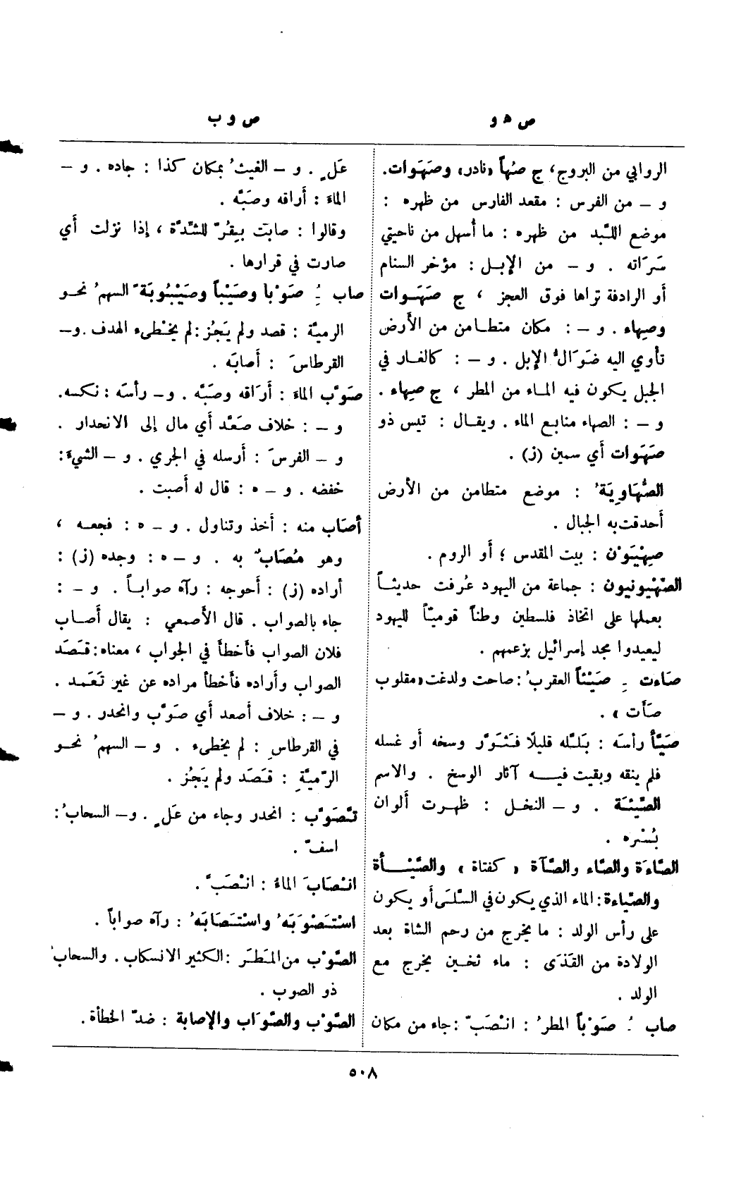 صاب- صوبا وصيبًا وصيبوبة السهم نحو الرمية: قصد ولم يجز: لم يخطئ الهدف. و- القرطاس: أصابه.