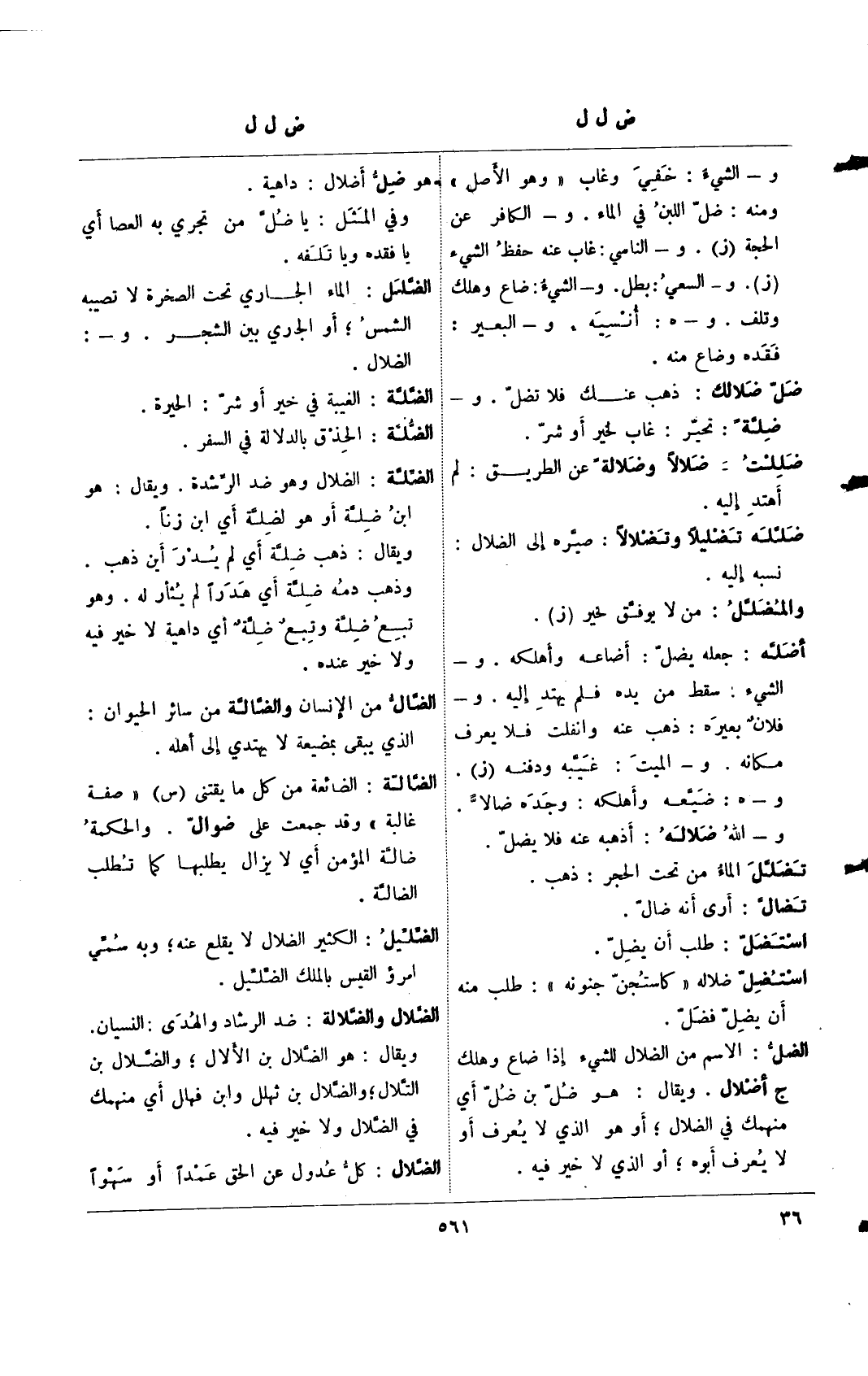 ج أضلال. ويقال: هو ضل بن ضل أي منهمك في الضلال؛ أو هو الذي لا يعرف أولا يعرف أبوه؛ أو الذي لا خير فيه.