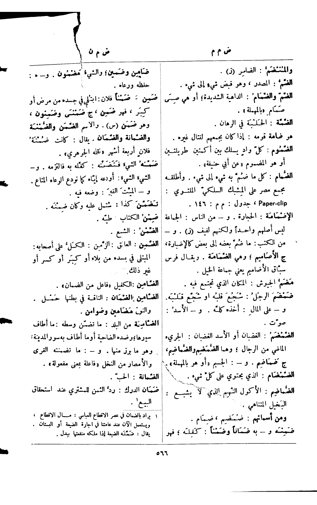 (¬1) 1 يراد بالضمان في عصر الاقطاع العباسي: مال الاقطاع، ويستعمل الآن عند عامتنا في اجارة الضيعة أو البستان. يقال: ضمنه الضيعة إذا ملكه منفعتها ببدل.