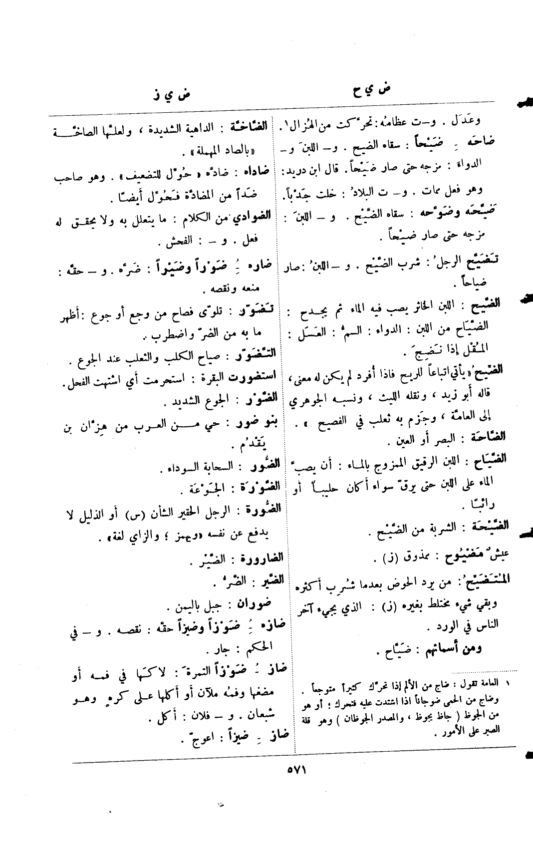 ضاحه= ضيحً: سقاه الضيح. و- اللبن و- الدواء: مزجه حتى صار ضيحً. قال ابن دريد: وهو فعل ممات. و-ت البلاد: خلت جدبً.