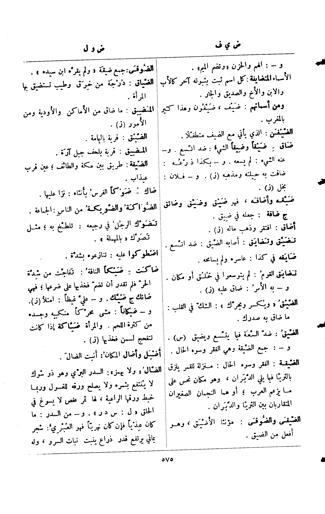 ضاق= ضيقً وضيقً الشيء: ضد اتسع. و- عنه الشيء: لم يسعه. و- بكذا ذرعه: ضاقت به حيلته ومذهبه (ز). و- فلان: بخل (ز).