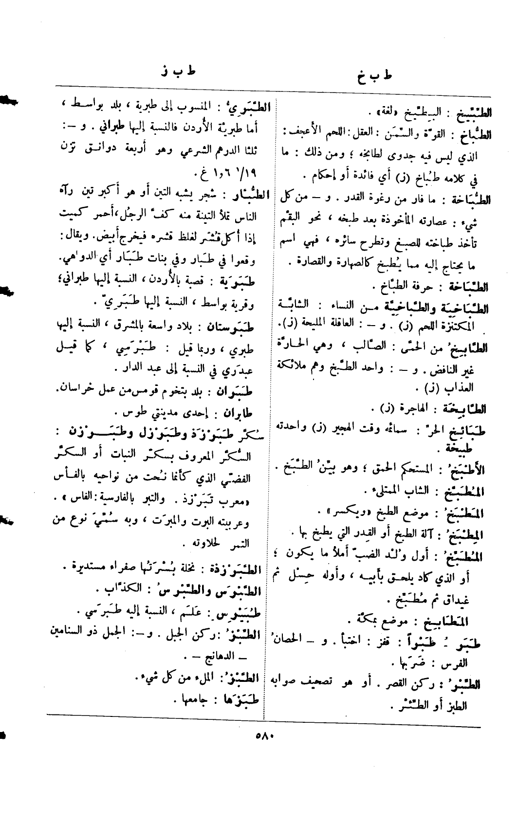 الطباخية والطباخية من النساء: الشابة المكتنزة اللحم (ز). و-: العاقلة المليحة (ز). الطابخ من الحمى: الصالب، وهي الحارة غير النافض. و-: واحد الطبخ وهم ملائكة الذاب (ز).
