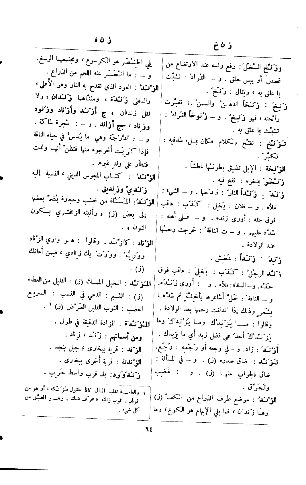 (¬1) والعامة تقلب الدال كافًا فتقول مزنك، أو هو من قولهم: ثوب زنك"محرف ضنك" وهو المضيق من كل شيء.