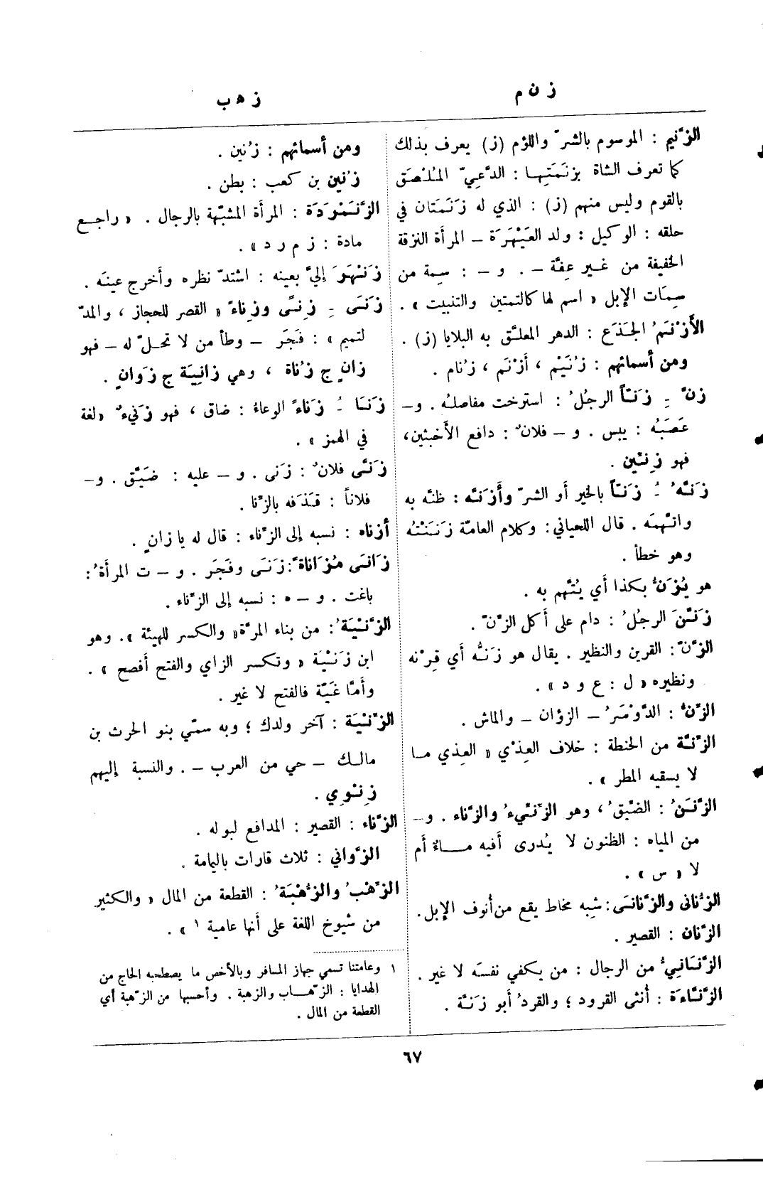 الزهب والزهبة: القطعه من المال "والكثير من الشيوخ اللغة على أنها عامية". (¬1)
