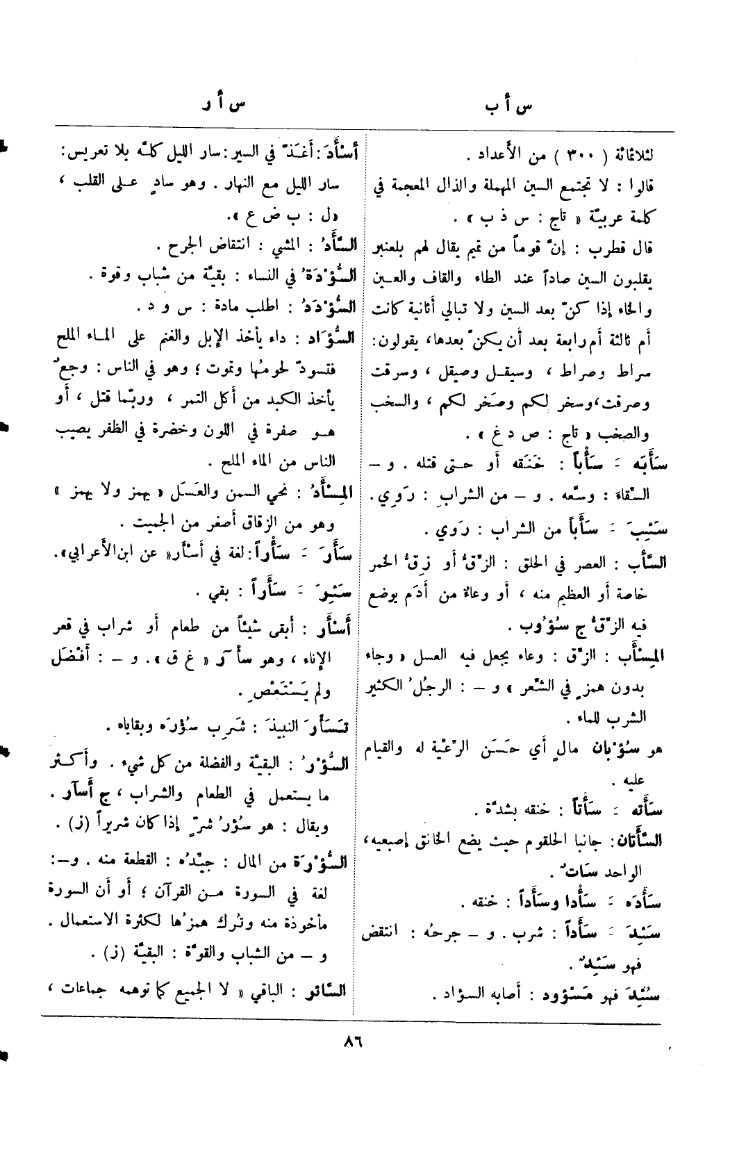 سأبه – سأبًا: خنقة أو حتي قتله. و- السقاء: وسعة. و- الشراب: روي. سئب- سأبًا من الشراب: روي.