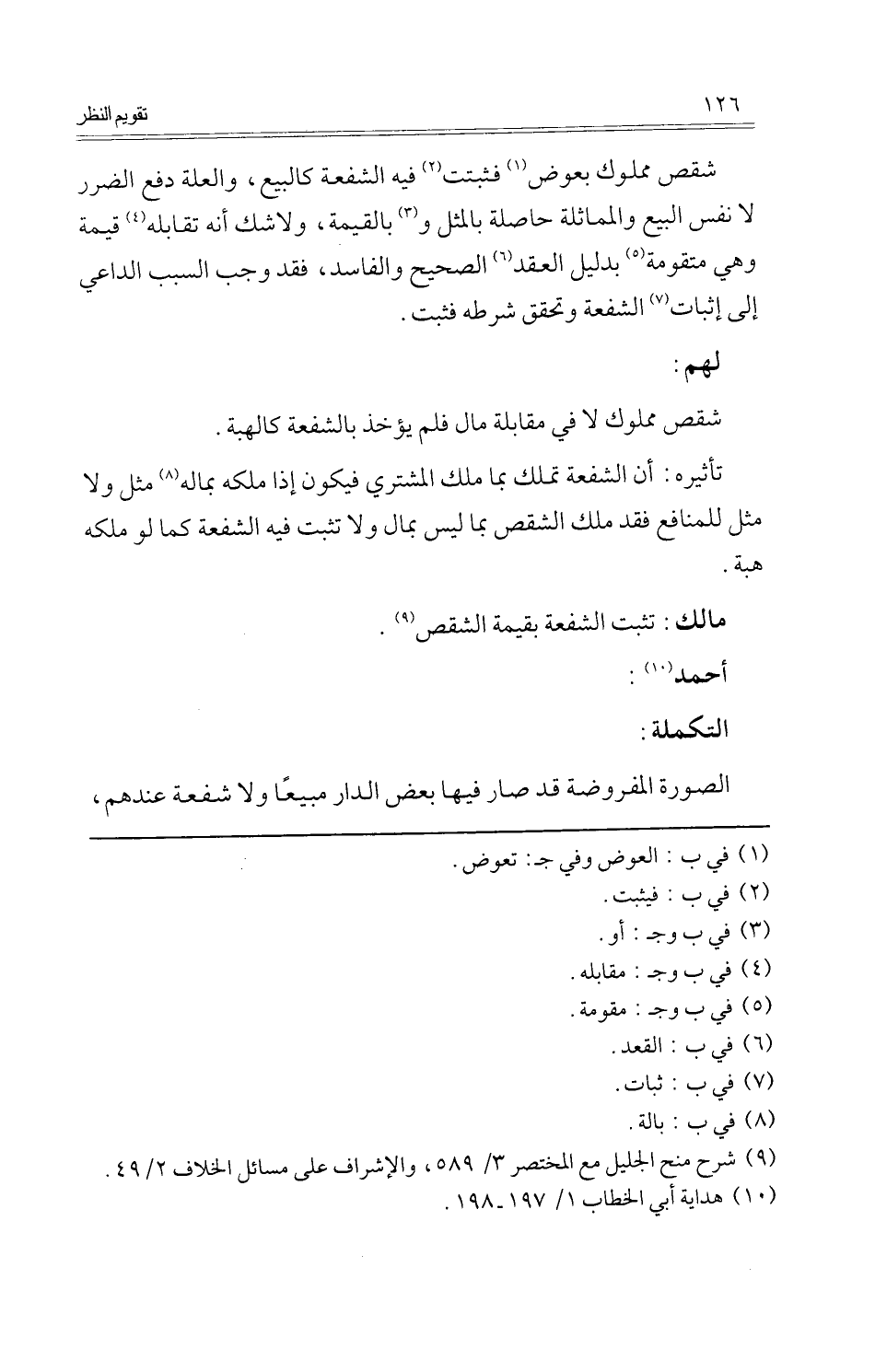 مَالك: تثبت الشُّفْعَة بِقِيمَة الشّقص.