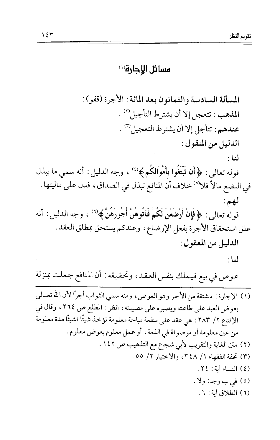 (الْمَسْأَلَة السَّادِسَة وَالثَّمَانُونَ بعد الْمِائَة: الْأُجْرَة (قفو) :)