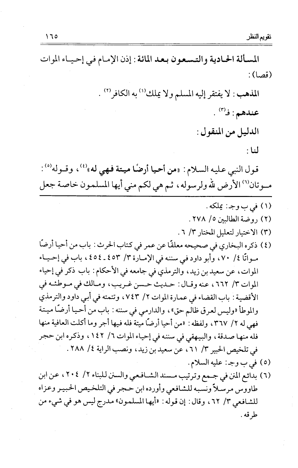 (الْمَسْأَلَة الْحَادِيَة وَالتِّسْعُونَ بعد الْمِائَة: إِذن الإِمَام فِي إحْيَاء الْموَات (قصا) :)