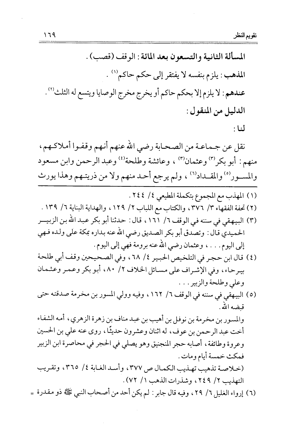 نقل عَن جمَاعَة من الصَّحَابَة رَضِي الله عَنْهُم أَنهم وقفُوا أملاكهم، مِنْهُم: أَبُو بكر وَعُثْمَان، وَعَائِشَة وَطَلْحَة وَعبد الرَّحْمَن وَابْن مَسْعُود والمسور والمقداد، وَلم يرجع أحد مِنْهُم وَلَا من ذُرِّيتهمْ وَهَذَا يُورث
