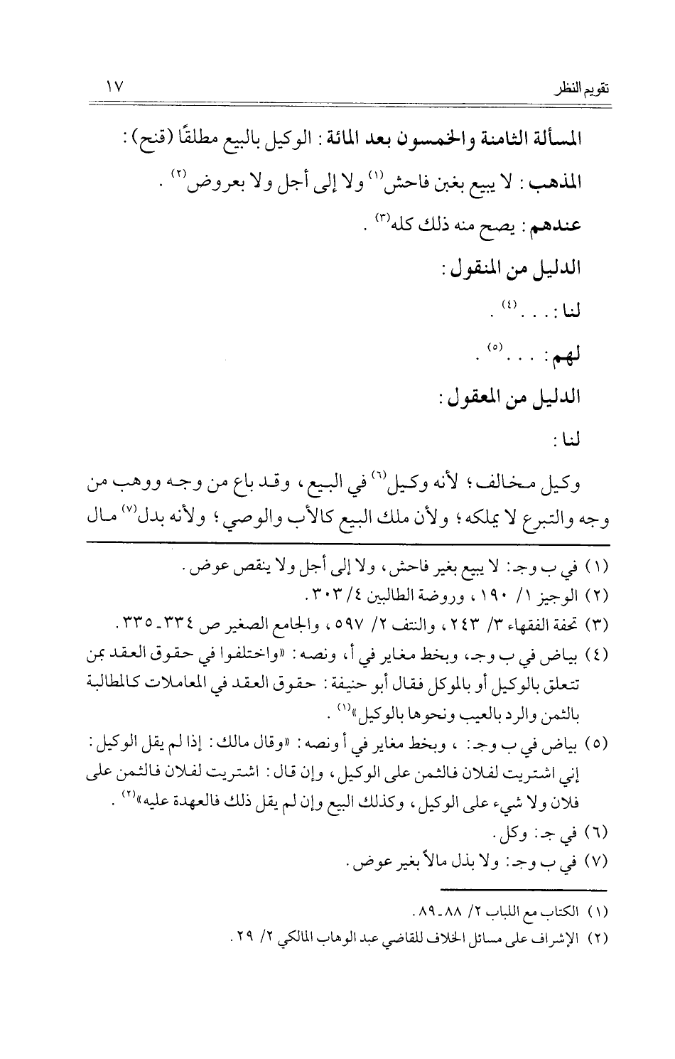 كتاب تقويم النظر في مسائل خلافية ذائعة (اسم الجزء: 3)