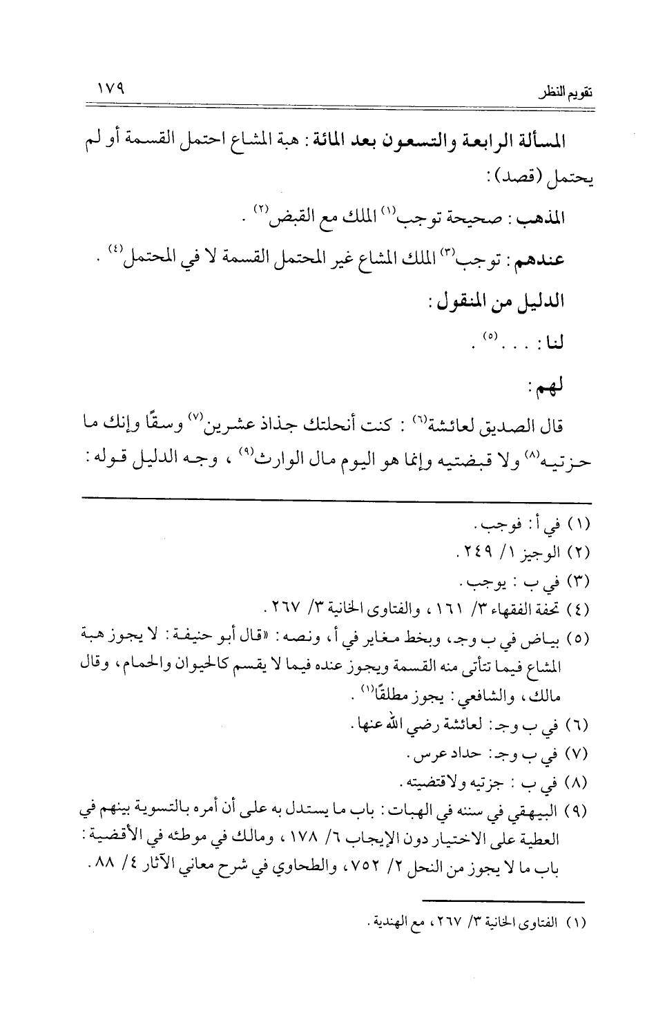 (الْمَسْأَلَة الرَّابِعَة وَالتِّسْعُونَ بعد الْمِائَة: هبة الْمشَاع احْتمل الْقِسْمَة أَو لم يحْتَمل (قصد) :)