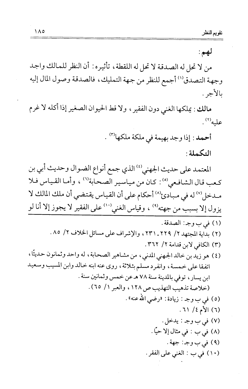 الْمُعْتَمد على حَدِيث الْجُهَنِيّ الَّذِي جمع أَنْوَاع الضوال وَحَدِيث أبي بن كَعْب قَالَ الشَّافِعِي: كَانَ من مياسير الصَّحَابَة، وَأما الْقيَاس فَلَا مدْخل لَهُ فِي مبادئ أَحْكَام على أَن الْقيَاس يَقْتَضِي أَن ملك الْمَالِك لَا يَزُول إِلَّا بِسَبَب من جِهَته، وَقِيَاس الْغَنِيّ على الْفَقِير لَا يجوز إِلَّا أَنا لَو